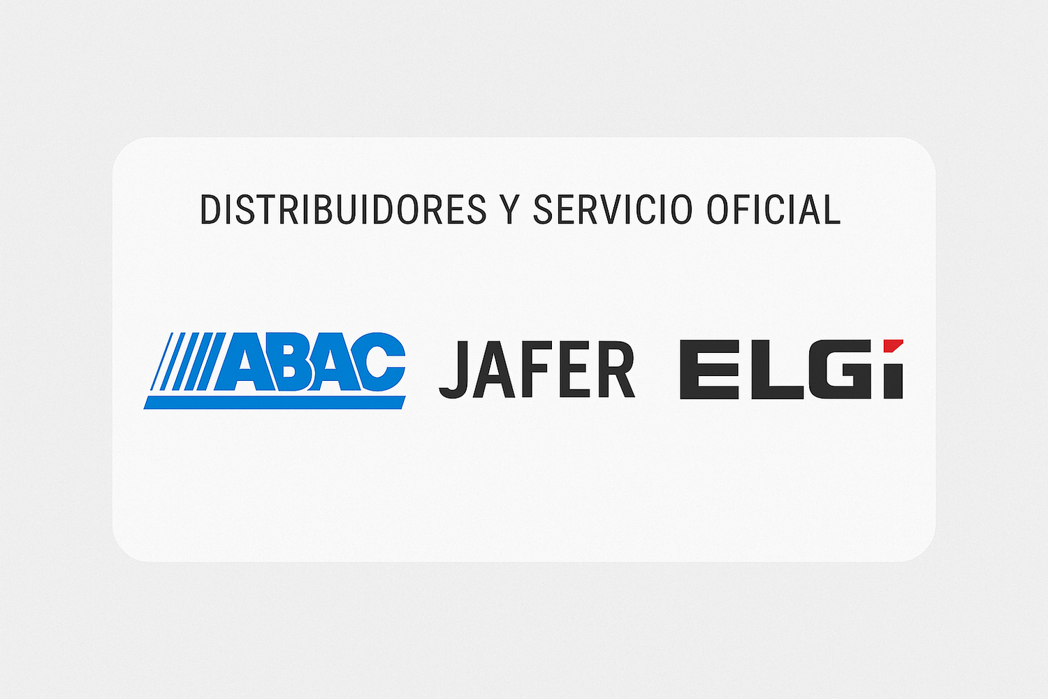 Somos distribuidores y servicio oficial de las marcas líderes ABAC, JAFER y ELGi, lo que nos permite ofrecer una gama completa de compresores, equipos de tratamiento de aire y accesorios adaptados a cada necesidad.