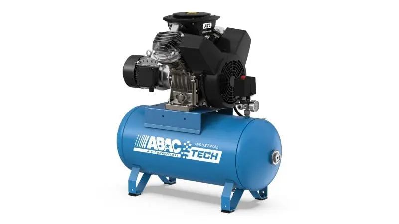 El compresor ABAC ATL 3 90 10 (monofásico) pertenece a la serie industrial ATL, reconocida por ofrecer fiabilidad máxima y un ciclo de trabajo del 100%. Es un compresor de pistón lubricado con aceite, con transmisión por correas y montado sobre un depósito de 90 litros, lo que garantiza un suministro continuo de aire en aplicaciones profesionales exigentes.