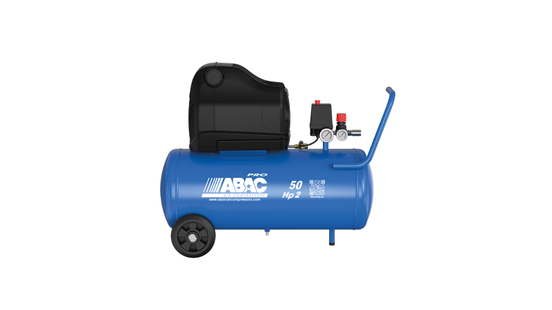 Con una potencia de 2 hp y un depósito de 50 litros, ofrece un caudal de 222 l/min y una presión máxima de 10 bar, proporcionando la capacidad necesaria para aplicaciones que requieren un mayor tiempo de trabajo continuo. Su régimen de 2.900 rpm garantiza un suministro constante de aire, mientras que su nivel sonoro de 72 dB(A) lo hace apto para entornos donde la reducción de ruido es importante.